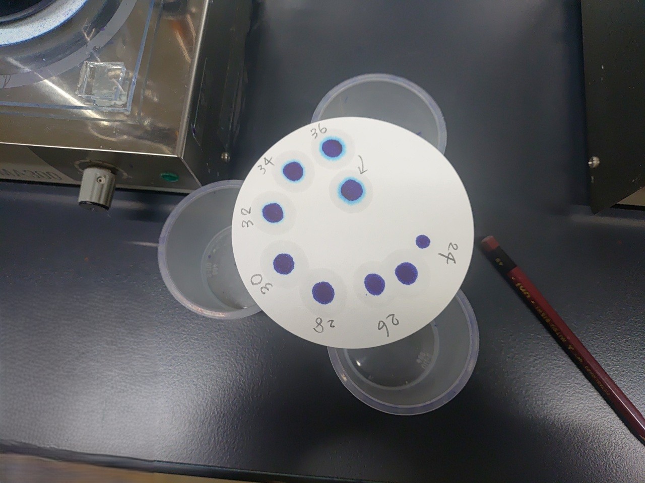 撹拌後は均等に攪拌されているかどうかの確認をするため、フェノールフタレイン水溶液を散布して、化学反応の有無を確認します。
