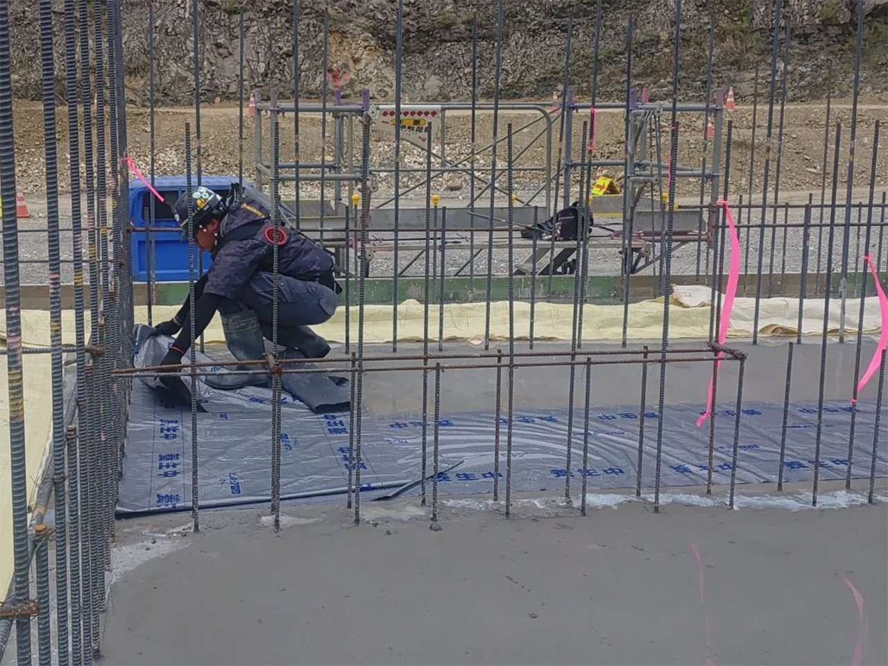 調整池工の鉄筋組立を行っています。コンクリート打設前の鉄筋組立は段階確認が必要な重要な工程です。