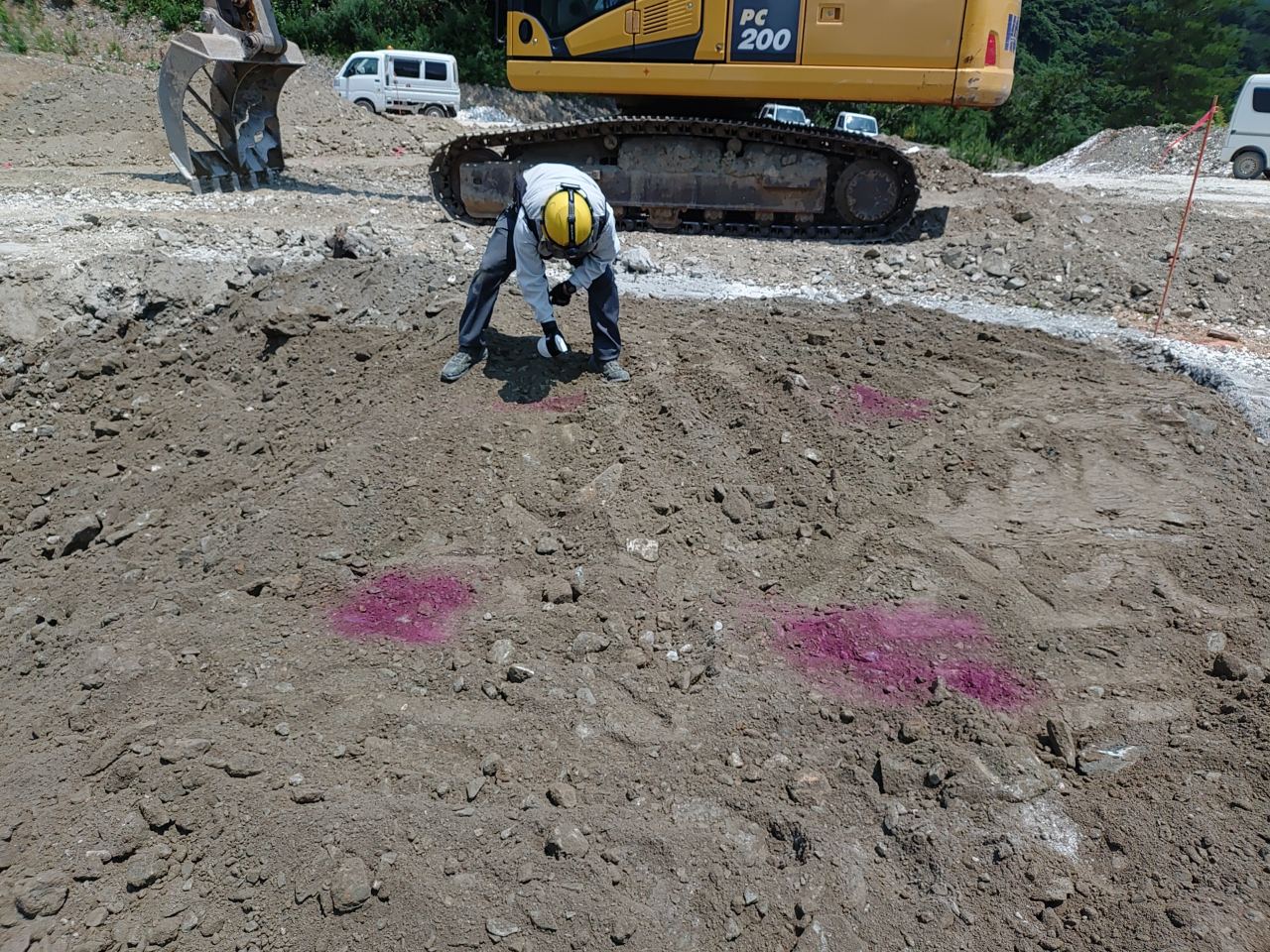 今回は10回転圧まで行い、それぞれ上記の試験盛土を行いました。