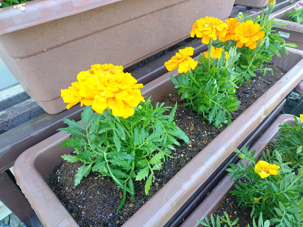 ペンタスやマリーゴールド、トレニアなど夏に咲く花をメインで植えました。